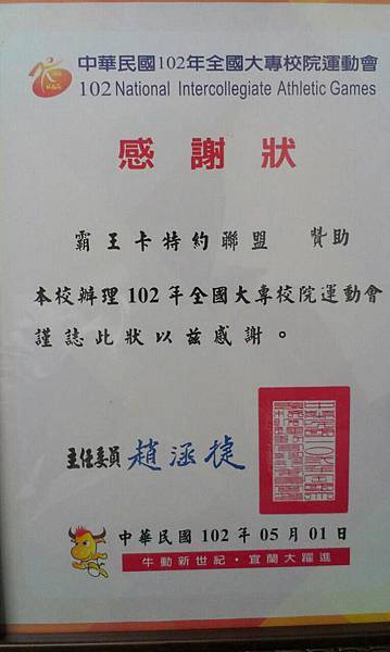 這次贊助的全大運圓滿落幕,