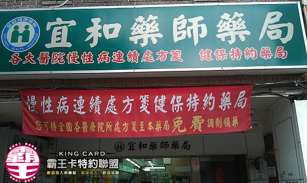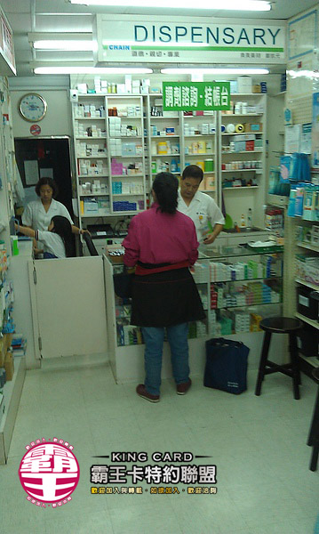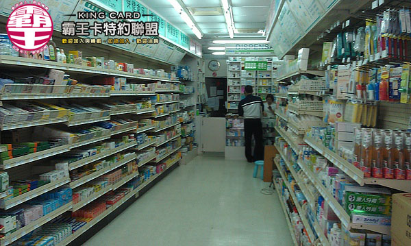店家折扣項目:持霸王卡店內消費九折(廣告藥品及特價商品除外)(慢性處方簽免費領藥)